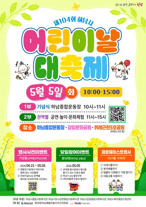 [½Åµ¿¾Æ¹æ¼Û Çϳ²½Ã=À̽ŵ¿±âÀÚ] Çϳ²½Ã´Â 2026³â Á¦104ȸ ¾î¸°À̳¯À» ¸Â¾Æ ¿À´Â 5¿ù 5ÀÏ, ¾î¸°ÀÌ¿Í °¡Á·ÀÌ ÇÔ²² Áñ±æ ¼ö ÀÖ´Â ¡®Á¦104ȸ Çϳ²½Ã ¾î¸°À̳¯ ´ëÃàÁ¦¡¯¸¦ °³ÃÖÇÑ´Ù. À̹ø Çà»ç´Â ¾Æµ¿Ä£È­µµ½Ã Çϳ²ÀÇ ¹Ì·¡ ÁÖÀΰøÀÎ ¾î¸°À̵éÀÌ ´Ù¾çÇÑ Ã¼Çè°ú ¹®È­ ÇÁ·Î±×¡¦