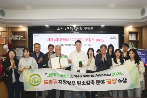 [½Åµ¿¾Æ¹æ¼Û µµºÀ±¸=À̽ŵ¿±âÀÚ] ¼­¿ï µµºÀ±¸°¡ Áö³­ 4¿ù 13ÀÏ ¿µ±¹ ¿þÀϽº Ä«µðÇÁ ¼º¿¡¼­ °³ÃÖµÈ ¡®±×¸°¿ùµå ¾î¿öÁî(Green World Awards) 2026¡®¿¡¼­ Áö¹æÁ¤ºÎ ź¼Ò°¨Ãà ºÐ¾ß ±Ý»óÀ» ¼ö»óÇß´Ù. ¡®±×¸°¿ùµå ¾î¿öÁ´Â 1994³â ¼³¸³µÈ ¿µ±¹ÀÇ ºñ¿µ¸® ģȯ°æ ´Üü ¡®´õ¡¦