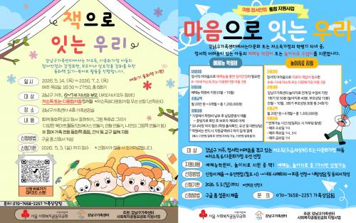 [½Åµ¿¾Æ¹æ¼Û °­³²±¸=À̽ŵ¿±âÀÚ] ²ÞÀÌ ¸ðÀÌ´Â µµ½Ã, ¹Ì·¡¸¦ ±×¸®´Â °­³²±¸°¡ Àú¼Òµæ¡¤´Ù¹®È­°¡Á¤ ¾Æµ¿ÀÇ °Ç°­ÇÑ Á¤¼­ ¼ºÀåÀ» µ½´Â ¡®Ã¥°ú ¸¶À½À¸·Î ÀÕ´Â ¿ì¸®¡¯ ÇÁ·Î±×·¥ Âü¿©ÀÚ¸¦ 5¿ù 3ÀϱîÁö ¸ðÁýÇÑ´Ù. »çȸº¹Áö°øµ¿¸ð±ÝȸÀÇ Áö¿øÀ¸·Î ÃßÁøµÇ´Â ÀÌ ÇÁ·Î±×·¥Àº °æÁ¦¡¦