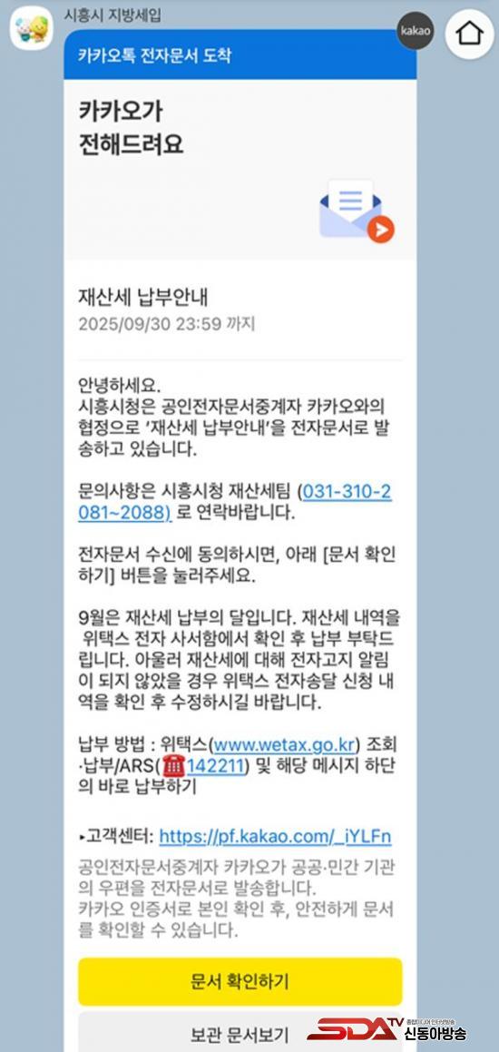 ½Ã´Â Áö³ 9¿ù 17ÀÏ Àç»ê¼¼ 2,913°Ç°ú Áֹμ¼ »ç¾÷¼ÒºÐ 12,662°Ç¿¡ ´ëÇØ ¸ð¹ÙÀÏ ÀüÀÚ°íÁö¸¦ ¹ß¼ÛÇßÀ¸¸ç, ÇØ´ç ¾Ë¸²ÅåÀº 9¿ù 30ÀϱîÁö ¿¶÷ÇÒ ¼ö ÀÖ´Ù.