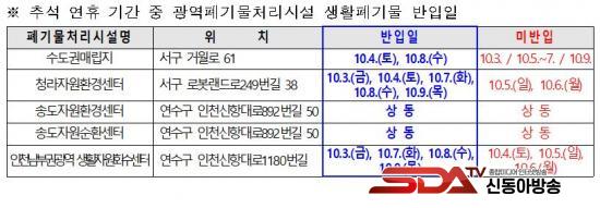 ÀÎõ½Ã, Ãß¼® ¿¬ÈÞ »ýȰ¾²·¹±â Ưº° ¼ö°Å ü°è º»°Ý °¡µ¿