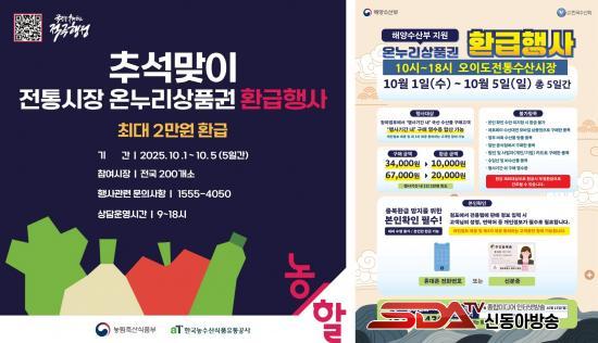 ¿ÀÀ̵µÀüÅë¼ö»ê½ÃÀå¿¡¼´Â ±¹³»»ê ¼ö»ê¹°À» ºñ·ÔÇØ ±¹³»»ê ¿ø¹° 70% ÀÌ»óÀ» »ç¿ëÇÑ Á£°¥·ù µî °¡°ø½Äǰµµ ȯ±Þ ´ë»ó¿¡ Æ÷ÇԵȴÙ. ´Ù¸¸ ÀÏ¹Ý À½½ÄÁ¡ ±¸¸Å, Á¦·ÎÆäÀÌ ¼ö»ê´ëÀü »óǰ±Ç °áÁ¦, Á¤ºÎ ºñÃà ¼ö»ê¹°, ¼öÀÔ»ê ¼ö»ê¹°Àº Á¦¿ÜµÈ´Ù. »ï¹Ì½ÃÀå¿¡¼´Â ±¹»ê ½Å¼± ³óÃà»ê¹° ±¸¸Å ½Ã ȯ±Þ ÇýÅÃÀ» ¹ÞÀ» ¼ö ÀÖ´Ù.
