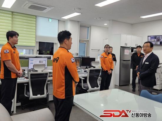 6ÀÏ Ãß¼®À» ¸Â¾Æ ÀÌÇöÀç Çϳ²½ÃÀå(¿À¸¥ÂÊ Ã¹ ¹øÂ°)ÀÌ ¹Ì»ç119¾ÈÀü¼¾ÅÍ¿¡ ¹æ¹®ÇØ ´ë¿øµéÀ» °Ý·ÁÇϰí ÀÖ´Ù.