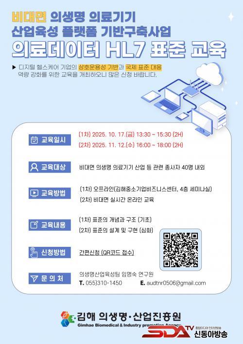 ±³À°Àº 10¿ù 17ÀÏ(±Ý), 11¿ù 12ÀÏ(¼ö) ÃÑ µÎ Â÷·Ê ¿î¿µµÇ¸ç, Âü°¡ ½ÅûÀº 9¿ù 24ÀÏ(¼ö)ºÎÅÍ 10¿ù 14ÀÏ(È)±îÁö °¡´ÉÇÏ´Ù. ÀÚ¼¼ÇÑ ³»¿ëÀº ±èÇØÀÇ»ý¸í»ê¾÷ÁøÈï¿ø ȨÆäÀÌÁö(https://gbia.or.kr)ÀÇ ¡®¾Ë¸²¸¶´ç¡¯°Ô½ÃÆÇ ¶Ç´Â K-BIOHUB(https://kbiohub.or.kr/)ÀÇ ¡®°øÁö»çÇס¯ °Ô½ÃÆÇÀ» ÅëÇØ È®ÀÎÇÒ ¼ö ÀÖ´Ù.