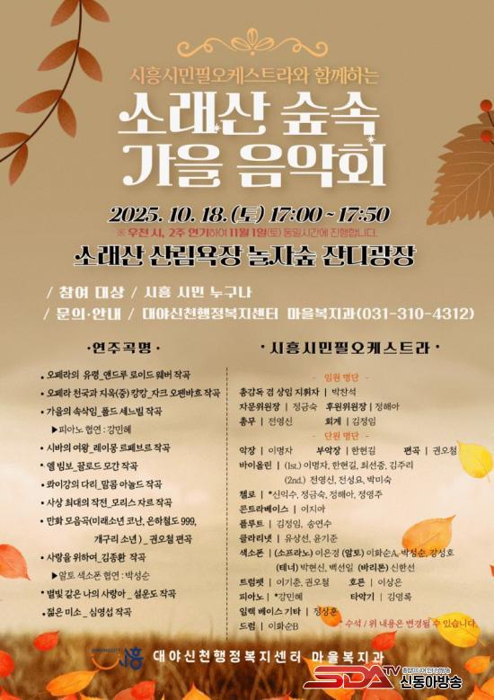 À½¾Çȸ´Â À̳¯ ¿ÀÈÄ 5½ÃºÎÅÍ 50ºÐ°£ ÁøÇàµÇ¸ç, ´ëÇ¥ÀÎ ¹ÚÂù¼® ÁöÈÖÀÚ¿Í Á¤±Ý¼÷ ÀÚ¹®À§¿øÀåÀ» ºñ·ÔÇÑ ÃÑ 30¿© ¸íÀÇ ´Ü¿øÀ¸·Î ±¸¼ºµÈ ¡®½ÃÈï½Ã¹Î ÇÊ(phil) ¿ÀÄɽºÆ®¶ó¡¯°¡ ¿¬ÁÖ¸¦ ¸Ã´Â´Ù.