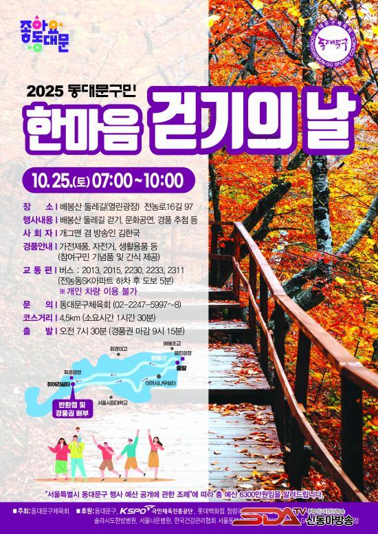 À̹ø Çà»ç´Â µ¿´ë¹®±¸Ã¼À°È¸°¡ ÁÖÃÖÇÏ°í µ¿´ë¹®±¸°¡ ÈÄ¿øÇÏ´Â ´ëÇ¥ÀûÀÎ ±¸¹Î Âü¿©Çü °È±âÇÁ·Î±×·¥À¸·Î, ¾à 3,500¿© ¸íÀÇ ÁÖ¹ÎÀÌ ÇÔ²²ÇÒ ¿¹Á¤ÀÌ´Ù. °¡À» Á¤Ãë°¡ ¹°¾À dz±â´Â ¹èºÀ»ê µÑ·¹±æÀ» µû¶ó ¾à 4.5km(¾à 1½Ã°£ 30ºÐ ¼Ò¿ä)¸¦ °ÉÀ¸¸ç ±¸¹ÎµéÀÌ ÀÏ»ó ¼Ó °Ç°À» ´ÙÁö´Â ½Ã°£À» °®´Â´Ù.