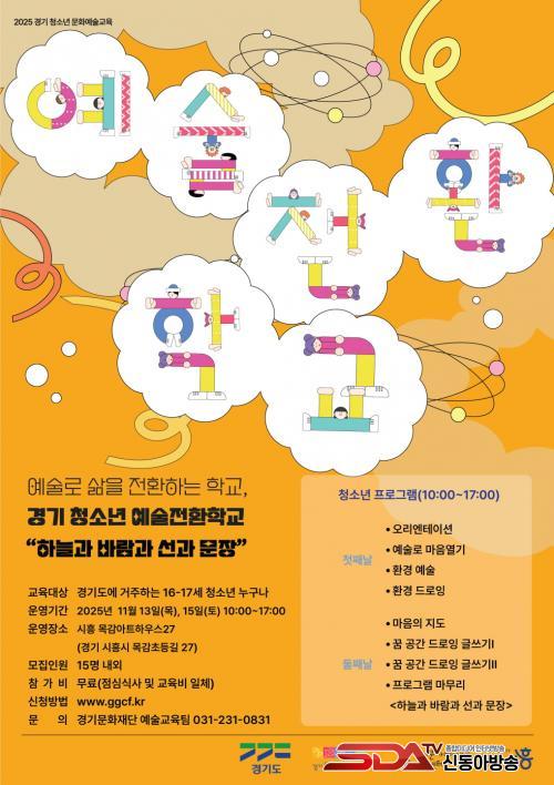 ¡®°æ±â û¼Ò³â ¿¹¼úÀüȯÇб³¡¯´Â °æ±âµµ¿Í °æ±â¹®È­Àç´ÜÀÌ ÁÖÃÖ¤ýÁÖ°üÇÏ´Â »ç¾÷À¸·Î, µ§¸¶Å©ÀÇ ¡®¿¡ÇÁÅͽºÄÝ·¹(Efterskole)¡¯¸¦ ¸ðµ¨·Î Çß´Ù. Àüȯ±â¸¦ ¸ÂÀº û¼Ò³âµéÀÌ À½¾Ç, ¿¬±Ø, ¹«¿ë, ¹Ìµð¾î, »ýÅ ¿¹¼ú µî ´Ù¾çÇÑ ¿¹¼ú Ȱµ¿À» ÅëÇØ ÀھƸ¦ ޱ¸Çϰí Áø·Î¿Í »îÀÇ ¹æÇâÀ» ¸ð»öÇÒ ¼ö ÀÖµµ·Ï Áö¿øÇÑ´Ù.
