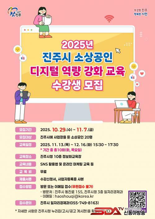 ±³À°ºñ´Â ¹«·áÀ̸ç, ÁøÁֽÿ¡ »ç¾÷ÀåÀ» µÎ°í ÀÖ´Â ¼Ò»ó°øÀÎÀÌ¸é ´©±¸³ª ½ÅûÀÌ °¡´ÉÇÏ´Ù. ¸ðÁýÀοøÀº 20¸íÀ¸·Î, ½ÅûÀοøÀÌ ¸ðÁýÀοøÀ» ÃʰúÇÒ °æ¿ì ¼±Á¤±âÁØ¿¡ µû¶ó ´ë»óÀÚ¸¦ ¼±¹ßÇÒ ¿¹Á¤ÀÌ´Ù.