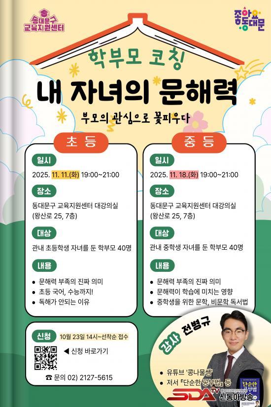 ¡®³» ÀÚ³àÀÇ ¹®Çط Ư°¡¯(11¿ù 11ÀÏ¡¤18ÀÏ)Àº ÃÊ¡¤Áßµî Çкθ𠰢 40¸íÀ» ´ë»óÀ¸·Î, ÀÚ³à ÇнÀÀÇ ±âÃʰ¡ µÇ´Â ¹®ÇØ·Â Çâ»ó ¹æ¹ýÀ» ´Ù·é´Ù. ¡®¹®ÇØ·Â ºÎÁ·ÀÇ ÁøÂ¥ Àǹ̡¯, ¡®µ¶ÇØ·Â Çâ»ó Àü·«¡¯ µî ½ÇÁúÀû ÄÚĪÀ» ÅëÇØ ºÎ¸ð°¡ ÀÚ³àÀÇ ÇнÀÀ» Áö¿øÇÏ´Â ¹æ¹ýÀ» ¹è¿î´Ù.