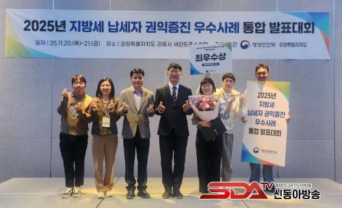 [½Åµ¿¾Æ¹æ¼Û=ÀÌÀçö±âÀÚ] ´çÁø½Ã(½ÃÀå ¿À¼ºÈ¯)´Â Áö³­ 11¿ù 20ÀϺÎÅÍ 11¿ù 21ÀϱîÁö °­¸ª½Ã ¼¼ÀÎÆ®Á¸½ºÈ£ÅÚ¿¡¼­ ¿­¸°¡®2025³â Áö¹æ¼¼ ³³¼¼ÀÚ ±ÇÀÍÁõÁø ¿ì¼ö»ç·Ê ÅëÇÕ ¹ßÇ¥´ëȸ¡¯¿¡¼­ ÃÖ¿ì¼ö»ó(ÇàÁ¤¾ÈÀüºÎÀå°ü»ó)À» ¼ö»óÇß´Ù°í 25ÀÏ ¹àÇû´Ù.