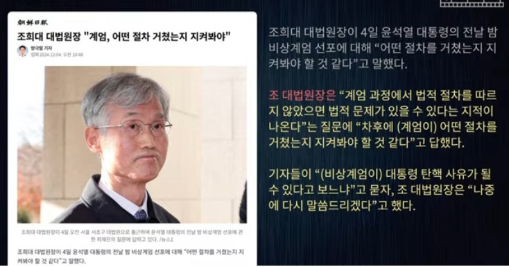 ´ë¹ý¿øÀå Á¶Èñ´ë´Â, ±¹¹ÎÇлìÀ» ¸í·ÉÇÑ À±¼®¿ÀÇ 12.3 ºñ»ó°è¾ö ¼±Æ÷ »çÅÂ¿Í °ü·ÃÇØ ³»¶õ¿¡ µ¿Á¶Çϰųª ¹æÁ¶Çß´Ù´Â ÇøÀÇ·Î ½Ã¹Î´Üü¿¡ ÀÇÇØ °í¹ßµÈ ¹Ù ÀÖÀ¸¸ç, ƯÁ¤ ½Ã¹Î´Üü µîÀº ´ë¹ý¿øÀå Á¶Èñ´ë°¡ ºñ»ó°è¾ö ´ç½Ã »ç¹ýºÎÀÇ ¿ªÇÒÀ» Á¦´ë·Î ¼öÇàÇÏÁö ¾Ê°í ¿ÀÈ÷·Á ³»¶õ ¼¼·Â¿¡ ºÎ¿ªÇßÀ» °¡´É¼ºÀÌ ³ô´Ù¸ç Áö¼ÓÀûÀ¸·Î °í¹ßÇØ ¿Ô´Ù°í ÀÌ ¸Åü´Â º¸µµÇß´Ù.