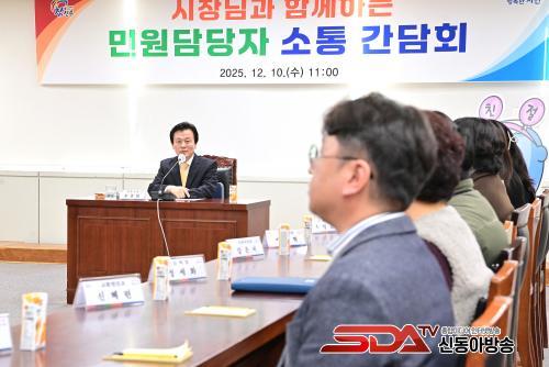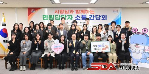 À̳¯ °£´ãȸ¿¡¼­ Á¶±ÔÀÏ ÁøÁÖ½ÃÀåÀº Çü½Ä¿¡ ¾ô¸ÅÀÌÁö ¾Ê´Â ÀÚÀ¯·Î¿î ºÐÀ§±â ¼Ó¿¡¼­ ¹Î¿øÇöÀåÀÇ ¾Ö·Î»çÇ×À» Á÷Á¢ ûÃëÇÏ°í ¹Î¿ø °³¼±¹æ¾È°ú ¼­ºñ½º Çâ»ó¿¡ ´ëÇÑ ´Ù¾çÇÑ ÀǰßÀ» °øÀ¯Çϸç Á÷¿øµéÀ» °Ý·ÁÇß´Ù.