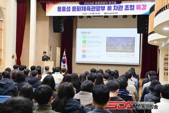 Á¶±ÔÀÏ ½ÃÀåÀº ¡°¹®È°ü±¤Àº ÁøÁÖ½ÃÀÇ µµ½Ã ºê·£µå¿Í ¹Ì·¡ °æÀï·ÂÀ» Á¿ìÇÏ´Â ÇÙ½É ºÐ¾ßÀ̹ǷÎ, ¿À´Ã Ư°°ú ¿öÅ©¼óÀÌ Á÷¿ø ¿©·¯ºÐµéÀÌ ¹®È°ü±¤ Á¤Ã¥À» ´õ¿í Æø³Ð°Ô ÀÌÇØÇϰí, ½Ç¹«¿¡ Àû¿ëÇÒ ¼ö ÀÖ´Â ¼ÒÁßÇÑ ½Ã°£ÀÌ µÇ±â¸¦ ¹Ù¶õ´Ù¡±¶ó¸é¼ ¡°ÇöÀå¿¡¼ °í¹ÎÇϰí Åä·ÐÇÑ ³»¿ëµéÀÌ 2026³â ÁÖ¿ä ¾÷¹«¿Í Á¤Ã¥ ÃßÁø¿¡ Àû±Ø ¹Ý¿µµÉ ¼ö Àֱ⸦ ±â´ëÇÑ´Ù¡±¶ó°í ¸»Çß´Ù.