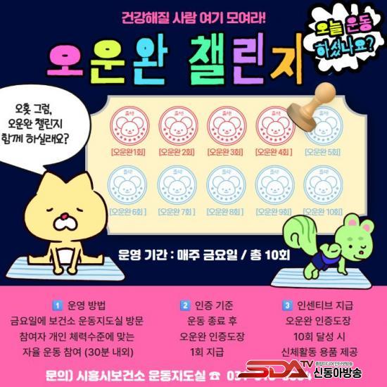 ¡®¿À¤ý¿î¤ý¿Ï 縰Áö¡¯´Â ¿îµ¿ ½À°ü Çü¼ºÀÇ Á߿伺À» ¾Ë¸®°í ½Ã¹ÎµéÀÌ Áñ°Ì°Ô ¿îµ¿¿¡ Âü¿©ÇÒ ¼ö ÀÖµµ·Ï ±âȹµÈ ÇÁ·Î±×·¥ÀÌ´Ù. Âü¿©ÀÚ´Â ¸ÅÁÖ ±Ý¿äÀÏ º¸°Ç¼Ò ¿îµ¿Áöµµ½ÇÀ» ¹æ¹®ÇØ °³ÀÎÀÇ Ã¼·Â ¼öÁØ¿¡ ¸ÂÃç ȸ´ç ¾à 30ºÐ ³»¿ÜÀÇ ÀÚÀ² ¿îµ¿À» ½ÇõÇϸç, ¿îµ¿ ¿Ï·á ½Ã¸¶´Ù ¡®¿À¤ý¿î¤ý¿Ï¡¯ 1ȸ ÀÎÁõ¹Þ´Â´Ù.