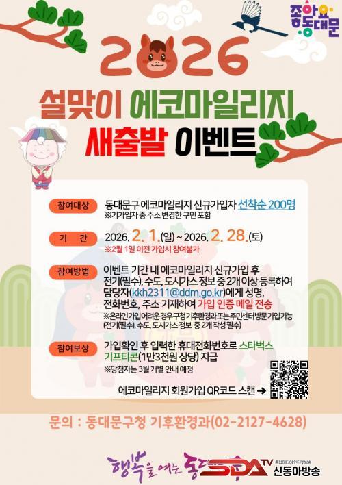 Âü¿©¸¦ Èñ¸ÁÇÏ´Â ±¸¹ÎÀº À̺¥Æ® ±â°£ ³» ¿¡ÄÚ¸¶Àϸ®Áö ¿Â¶óÀΠȨÆäÀÌÁö(https://ecomileage.seoul.go.kr)¸¦ ÅëÇØ ȸ¿ø°¡ÀÔ ÈÄ Àü±â¡¤¼öµµ¡¤µµ½Ã°¡½º Áß 2°³ ÀÌ»óÀÇ ¿¡³ÊÁö Á¤º¸¸¦ ÀÔ·ÂÇϰí, °¡ÀÔ ÀÎÁõ ¸ÞÀÏÀ» ´ã´çÀÚ À̸ÞÀÏ(kkh2311@ddm.go.kr)·Î Á¦ÃâÇÏ¸é µÈ´Ù. ¿Â¶óÀÎ °¡ÀÔÀÌ ¾î·Á¿î °æ¿ì µ¿´ë¹®±¸Ã» ±âÈÄȯ°æ°ú ¶Ç´Â µ¿ Áֹμ¾Å͸¦ ¹æ¹®ÇÏ¿© °¡ÀÔÇÒ ¼ö ÀÖ´Ù. ´ç÷ÀÚ´Â 3¿ù Áß °³º° ¾È³»ÇÒ °èȹÀÌ¸ç ´ç÷ÀÚ¿¡°Ô´Â Ä¿ÇÇ ±âÇÁƼÄÜÀ» ¸ð¹ÙÀÏ·Î ¹ß¼ÛÇÒ ¿¹Á¤ÀÌ´Ù.