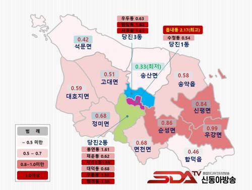 Áö¿ªº°·Î´Â À¾³»µ¿ÀÌ 2.17%·Î °¡Àå ³ôÀº »ó½Â·üÀ» ±â·ÏÇßÀ¸¸ç, ¼Û»ê¸éÀº 0.33%·Î °¡Àå ³·Àº »ó½Â·üÀ» º¸¿´´Ù. µµ½É Áö¿ª°ú »ó´ëÀûÀ¸·Î °³¹ß ¿©°ÇÀÌ ÀÖ´Â Áö¿ªÀº »ó½Â ÆøÀÌ ÄÇ´ø ¹Ý¸é, ³óÃÌ Áö¿ªÀº Àü³â°ú À¯»çÇÑ ¼öÁØÀÇ ¿Ï¸¸ÇÑ º¯µ¿À» ³ªÅ¸³Â´Ù.