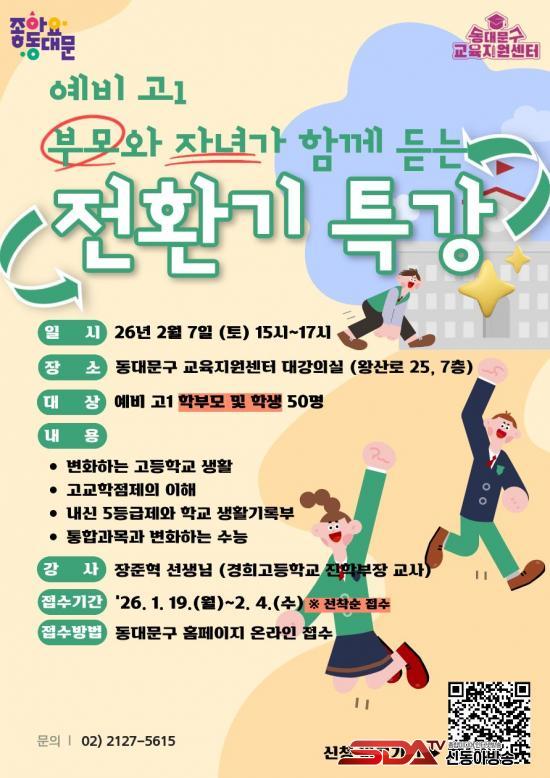 [½Åµ¿¾Æ¹æ¼Û µ¿´ë¹®±¸=À̽ŵ¿±âÀÚ] µ¿´ë¹®±¸´Â ¿¹ºñ ÁßÇлý ¹× °íµîÇлýÀ» ´ë»óÀ¸·Î ¾ÈÁ¤ÀûÀÎ Çб³»ýȰ ÀûÀÀ°ú Áø·Î¡¤Çо÷ ¼³°è¸¦ Áö¿øÇϱâ À§ÇÑ Àüȯ±â ±³À° ÇÁ·Î±×·¥À» ±³À°Áö¿ø¼¾ÅÍ(¿Õ»ê·Î 25, 7Ãþ)¿¡¼­ ¿î¿µÇÑ´Ù°í ¹àÇû´Ù.