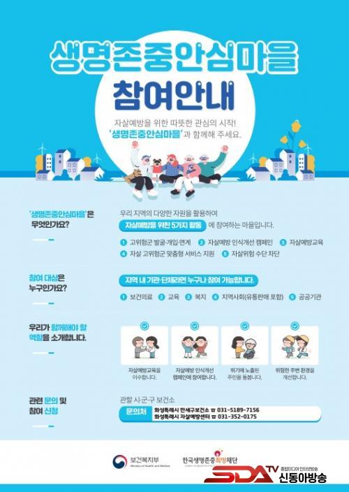 [½Åµ¿¾Æ¹æ¼Û=ÀÌÀçö±âÀÚ] È­¼ºÆ¯·Ê½Ã°¡ ÀÚ»ì ¿¹¹æ°ú Á¤½Å°Ç°­ ÁõÁøÀ» À§ÇØ ¡®»ý¸íÁ¸Áß ¾È½É¸¶À»¡¯À» È®´ë ¿î¿µÇÏ°í »ç¾÷¿¡ ÇÔ²²ÇÒ Áö¿ª»çȸ ±â°ü¡¤´Üü¸¦ ¸ðÁýÇÑ´Ù°í ¹àÇû´Ù.