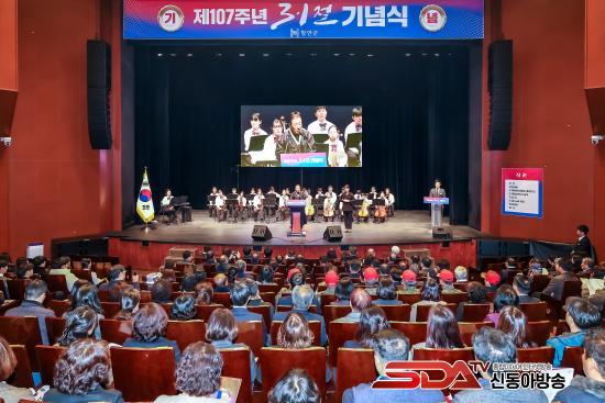 ±ºÀº ±â³ä½Ä¿¡ ¾Õ¼ ±ºÃ» º°°ü¿¡ ´ëÇü űر⸦ °Ô¾çÇϰí, 3¡¤1ÀýÀ» ±â³äÇØ °ü°ø¼¿Í °¡Á¤, ±â¾÷, ´Üü, ÁÖ¿ä µµ·Îº¯ µî¿¡ űر⠴ޱ⠿À» ÆîÃÆ´Ù.