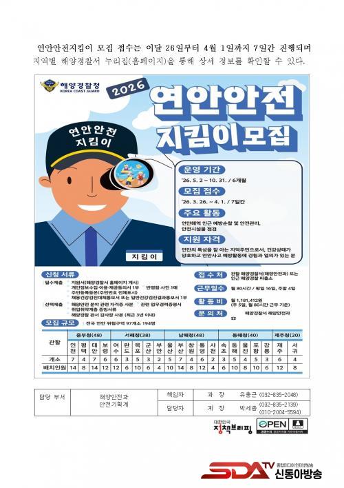 Áö³ 5³â°£(¡¯21~¡¯25³â) ÃÑ 930¸íÀÇ ¿¬¾È¾ÈÀüÁöÅ´À̰¡ 465°³¼ÒÀÇ À§Ç豸¿ª¿¡¼ ±¸È£ Á¶Ä¡ 60¸í, ¾ÈÀü°èµµ 61¸¸¿© ¸í, ¾ÈÀü½Ã¼³¹° Á¡°Ë 21¸¸¿© °ÇÀ» ½Ç½ÃÇÏ´Â µî ¿¬¾È »ç°í ¿¹¹æ°ú Áö¿ª ÀÏÀÚ¸® âÃâ¿¡µµ Å©°Ô À̹ÙÁöÇϰí ÀÖ´Ù.