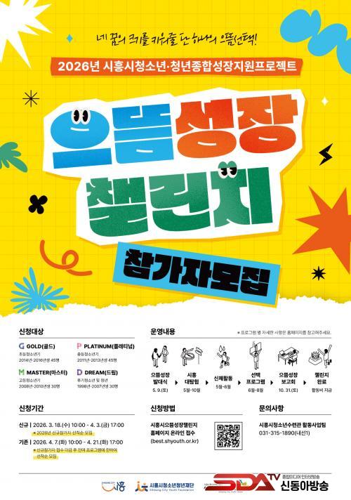 ¡®½ÃÈï½ÃÀ¸¶ä¼ºÀå縰Áö¡¯´Â 2021³â ½ÃÈï½Ãû¼Ò³âû³âÀç´ÜÀÌ °³¹ßÇÑ Ã»¼Ò³â¤ýû³â Á¾ÇÕ¼ºÀåÁö¿ø ÇÁ·ÎÁ§Æ®·Î, Âü¿©ÀÚ°¡ ÀÚ½ÅÀÇ »ý¾ÖÁֱ⿡ ¸Â´Â ´Ù¾çÇÑ µµÀü °úÁ¦¸¦ ÁÖµµÀûÀ¸·Î ¼öÇàÇÏ¸ç °Ç°Çϰí ÇູÇÑ ½Ã¹ÎÀ¸·Î ¼ºÀåÇÒ ¼ö ÀÖµµ·Ï Áö¿øÇÏ´Â ÇÁ·Î±×·¥ÀÌ´Ù.