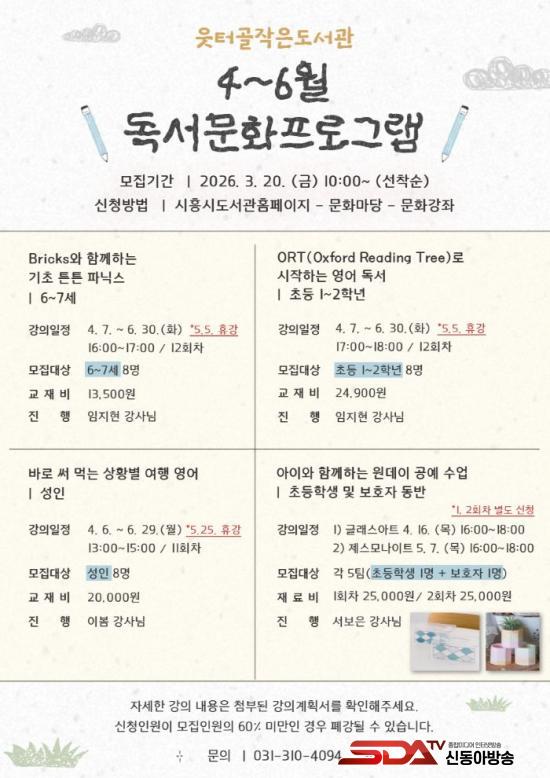 ÇÁ·Î±×·¥ ½ÅûÀº 3¿ù 20ÀÏ ¿ÀÀü 10½ÃºÎÅÍ µµ¼°ü °ø½Ä ´©¸®Áý ¶Ç´Â ¾Û(App)À» ÅëÇØ ¼±Âø¼øÀ¸·Î ÇÒ ¼ö ÀÖ´Ù. ÀÚ¼¼ÇÑ »çÇ×Àº ½ÃÈï½Ã µµ¼°ü ´©¸®ÁýÀ» Âü°íÇϰųª ¼Ò·¡ºûµµ¼°ü ÀÛÀºµµ¼°üÆÀ(031-310-4094)À¸·Î ¹®ÀÇÇÏ¸é ¾È³»¹ÞÀ» ¼ö ÀÖ´Ù.