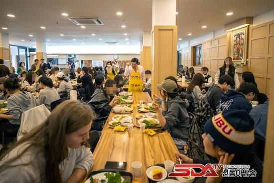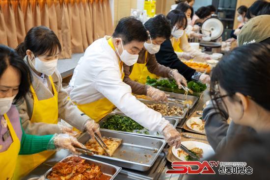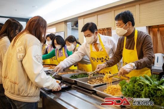 ½º´Ôµé°ú ÀÚ¿øºÀ»çÀÚµéÀÌ ºÐÁÖÈ÷ À½½ÄÀ» ³ª¸£°í, °ø¾ç°£ ¾Õ¿¡¼­´Â Çлýµé³¢¸® ¡°¿À´Ã ¸Þ´º°¡ ¹¹³Ä¡±¸ç ¿ôÀ½ ¼¯ÀÎ ´ëÈ­¸¦ ÁÖ°í¹Þ¾Ò´Ù. ±× ÁÙ ¾Õ¿¡ ÀÌÇÊÇü µ¿´ë¹®±¸Ã»Àåµµ ¼¹´Ù. Çлýµé¿¡°Ô Á÷Á¢ À½½ÄÀ» °Ç³×¸ç ¡°¹ä Àß Ã¬°Ü ¸Ô°í, Çо÷°ú ¹Ì·¡ Áغñµµ Èû³»¶ó¡±°í ¸»À» °Ç³Þ´Ù. ÀÌ ±¸Ã»ÀåÀº ¿¬È­»ç ¡®Ã»³â¹äãý¡¯ ÇöÀå¿¡¼­ ¹è½ÄÀÚ·Î Âü¿©ÇØ ´ëÇлýµéÀ» °Ý·ÁÇß´Ù.