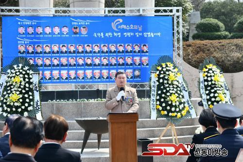 °í À§¿øÀåÀº ¶Ç "¼¼°è °÷°÷¿¡¼ ¹ú¾îÁö´Â ÀüÀïÀÌ ´õ ÀÌ»ó ³²ÀÇ ÀÏó·³ ´À²¸ÁöÁö ¾Ê´Â ¸¸Å Á¶±¹¼öÈ£ ¿µ¿õÀ» ¿µ¿õÀ¸·Î ¿Ã¹Ù¸£°Ô ±â¾ïÇÏ°í ±â¸®´Â dzÅä°¡ ÇÊ¿äÇÏ´Ù"°í ¸»Çß´Ù. À̾î "¼ÇؼöÈ£ ¿µ¿õµéÀÇ ÃæÈ¥À» ±â¸®´Â Á¤¼ºÀÌ È£±¹ÀÇ º»Çâ ¿©¼ö¸¦ ºû³»´Â º¸ÈÆÀÇ ½ÇõÀ¸·Î À̾îÁö±æ ¹Ù¶õ´Ù"°í ¹àÇû´Ù.
