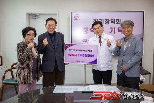 ¹ÚÁ¤Ã¶ ȸ±âÀåÇÐȸ ÀÌ»çÀåÀº ¡°±×µ¿¾È ȸ±âµ¿ ÇлýµéÀ» À§ÇØ ¶æÀ» ¸ð¾Æ¿Â ÀåÇÐȸ¿øµéÀÇ ¼ÒÁßÇÑ ¸¶À½ÀÌ µ¿´ë¹®±¸ ÀüüÀÇ ÀÎÀç À°¼ºÀ» À§ÇÑ ¹Ø°Å¸§ÀÌ µÇ±æ ¹Ù¶õ´Ù¡±¸ç ¡°±âŹµÈ ±â±ÝÀÌ ¾î·Á¿î ȯ°æ ¼Ó¿¡¼µµ ²ÞÀ» Ű¿ö°¡´Â Çлýµé¿¡°Ô Å« ÈûÀÌ µÇ¾úÀ¸¸é ÇÑ´Ù¡±°í ¼Ò°¨À» ÀüÇß´Ù.