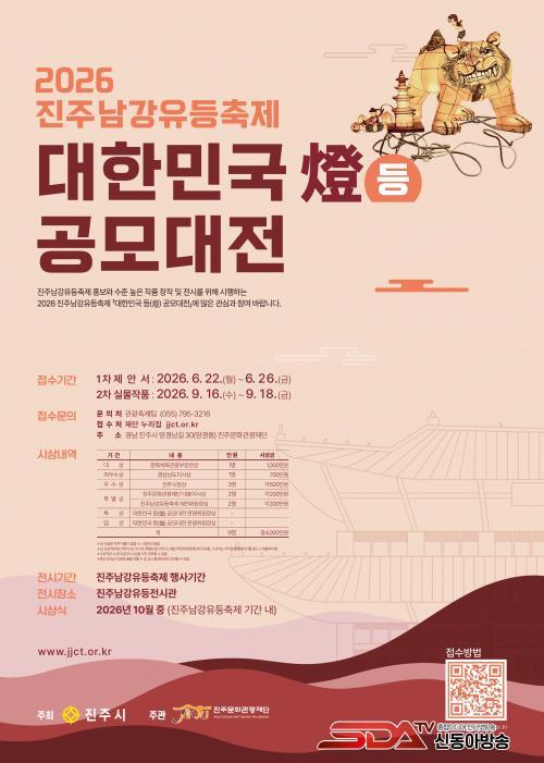¼ö»óÀÛÀº 2026 ÁøÁÖ³²°À¯µîÃàÁ¦ ±â°£ µ¿¾È ÁøÁÖ³²°À¯µîÀü½Ã°ü ¹× ÁøÁֽà Áß¾ÓÁöÇϵµ»ó°¡(¿¡³ª¸ô) µî¿¡¼ Àü½ÃµÉ ¿¹Á¤À̸ç, ÀϺΠÀÛǰÀº ÇâÈÄ Àü½Ã ¹× ÄÜÅÙÃ÷·Îµµ Ȱ¿ëµÉ °èȹÀÌ´Ù.