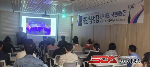 ¡®¿ù°£ ³²¼º´ç¡¯Àº ±èÀåÇÏ ¼±»ýÀÇ ³ª´®°ú ¹è·ÁÀÇ Á¤½ÅÀ» ¹ÙÅÁÀ¸·Î ÁøÁÖ Áö¿ªÀÇ ¿ª»ç¿Í Àι°À» Á¶¸íÇϰí, ¡®ÁøÁÖ Á¤½Å¡¯À» ÇÔ²² ³ª´©±â À§ÇØ ¸¶·ÃµÈ ÇÁ·Î±×·¥ÀÌ´Ù. À̹ø 3¿ù °Á´ ÀÌ·¯ÇÑ ÃëÁö¸¦ ¹ÙÅÁÀ¸·Î ¡®ÁøÁÖ °ÉÀΡ¤±â»ý ¸¸¼¼¿îµ¿¡¯À» ÁÖÁ¦·Î ÁøÇàµÆ´Ù.