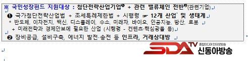 ±¹¹Î¼ºÀåÆÝµå´Â ÷´ÜÀü·«»ê¾÷°ú °ü·Ã »ýŰè Àü¹ÝÀ» Áö¿øÇϱâ À§ÇØ 5³â°£ ¹Î°ü ÇÕµ¿À¸·Î ÃÑ 150Á¶ ¿ø ±Ô¸ð·Î Á¶¼ºµÇ´Â Á¤ºÎÀÇ ÇÙ½É ±ÝÀ¶Á¤Ã¥ÀÌ´Ù. Áö¿ø ´ë»óÀº ¹ÝµµÃ¼¡¤¹æ»ê¡¤ÀΰøÁö´É¡¤·Îº¿ µî 12°³ ±¹°¡Ã·´ÜÀü·«»ê¾÷°ú ÀÌ¿¡ ÇÊ¿äÇÑ Àåºñ °ø±Þ, ¼³ºñ ±¸Ãà µî ¹ë·ùüÀÎ Àü¹ÝÀ» Æ÷ÇÔÇÑ´Ù.