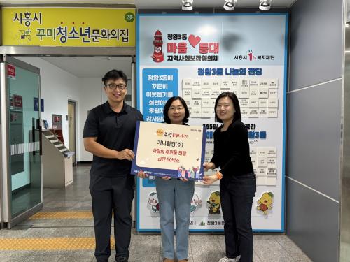 [½Åµ¿¾Æ¹æ¼Û ½ÃÈï½Ã=À̽ŵ¿±âÀÚ] °¡³ªÈ¯°æ(ÁÖ)´Â Áö³­ 9¿ù 19ÀÏ Ãß¼® ¸íÀýÀ» ¸Â¾Æ Á¤¿Õ3µ¿¿¡ °ÅÁÖÇÏ´Â Ãë¾à°èÃþÀ» À§ÇØ Á¤¿Õ3µ¿ Áö¿ª»çȸº¸ÀåÇùÀÇü¿¡ ¶ó¸é 50»óÀÚ¸¦ Àü´ÞÇß´Ù. °¡³ªÈ¯°æ(ÁÖ)´Â û¼Ò Çõ½ÅÀ» À̲ô´Â ½ÃÈï½Ã °ü³» »ýȰÆó±â¹° ¼ö°ÅÁö¿ø Àü¹®¾÷ü·Î, Á¤¿Õ¡¦