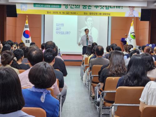 [½Åµ¿¾Æ¹æ¼Û °æ³²ÇÔ¾È=À̽ŵ¿±âÀÚ] ÇԾȱºÀº Áö³­ 19ÀÏ ¿ÀÈÄ 3½Ã ±ºÃ» 3Ãþ ȸÀǽǿ¡¼­ Àαâ Äڹ̵ð¾ðÀÌÀÚ ¹æ¼ÛÀÎ ±è¿µÃ¶¾¾¸¦ ÃÊÃ»ÇØ Á¦176ȸ ÇԾȱº¹Î´ëÇÐ °­Á¸¦ °³ÃÖÇß´Ù°í ¹àÇû´Ù. À̹ø °­Á´ ¡®´ç½ÅÀÇ ²ÞÀº ¹«¾ùÀԴϱ¸¦ ÁÖÁ¦·Î ±º¹Î°ú °ø¹«¿ø 200¿© ¸íÀÌ Âü¡¦