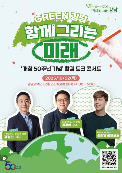 [½Åµ¿¾Æ¹æ¼Û °­³²±¸=À̽ŵ¿±âÀÚ] ²ÞÀÌ ¸ðÀÌ´Â µµ½Ã, ¹Ì·¡¸¦ ±×¸®´Â °­³²±¸°¡ °³Ã» 50ÁÖ³âÀ» ±â³äÇØ ¿À´Â 10¿ù 2ÀÏ ¿ÀÈÄ 2½Ã ÄÚ¿¢½º ½ºÅ¸Æ®¾÷ºê·£Ä¡¿¡¼­ ¡®GREEN °­³², ÇÔ²² ±×¸®´Â ¹Ì·¡¡¯¸¦ ÁÖÁ¦·Î ¡®È¯°æ ÅäÅ© Äܼ­Æ®¡¯¸¦ °³ÃÖÇÑ´Ù. À̹ø Çà»ç´Â ¾ÐÃàÀû µµ½Ã ¼ºÀå ¼Ó¡¦
