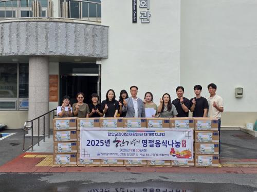 [½Åµ¿¾Æ¹æ¼Û °æ³²ÇÔ¾È=À̽ŵ¿±âÀÚ] ÇԾȱºÀå¾ÖÀÎÀçȰ¼¾Å͸¦ ´Ù°¡¿À´Â ÇѰ¡À§¸¦ ¸Â¾Æ Áö³­ 9¿ù 30ÀÏ, Áö¿ª Àú¼Òµæ Àå¾ÖÀÎ 30°¡±¸¸¦ ´ë»óÀ¸·Î ¡®ÇѰ¡À§ À½½Ä ³ª´® »ç¾÷¡¯À» ½Ç½ÃÇß´Ù°í ¹àÇû´Ù. À̹ø ³ª´® »ç¾÷Àº ÀçȰ¼¾ÅÍ¿Í Áö¿ª Àå¾ÖÀÎ ´ÜüµéÀÌ ÈûÀ» ¸ð¾Æ ÁøÇàÇß´Ù¡¦