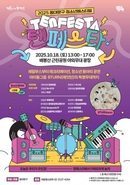 [½Åµ¿¾Æ¹æ¼Û µ¿´ë¹®±¸=À̽ŵ¿±âÀÚ] ¼­¿ï µ¿´ë¹®±¸´Â ¿À´Â 18ÀÏ ¿ÀÈÄ 1½ÃºÎÅÍ 5½Ã±îÁö ¹èºÀ»ê±Ù¸°°ø¿ø ¿­¸°±¤Àå¿¡¼­¡¸2025 µ¿´ë¹®±¸ û¼Ò³â Æä½ºÆ¼¹ú ¡®ÅÙ Æä½ºÅ¸(TEN FESTA)¡¯¡¹¸¦ °³ÃÖÇÑ´Ù°í ¹àÇû´Ù. ¿ÃÇØ 3ȸ°¸¦ ¸Â´Â À̹ø ÃàÁ¦´Â ¡®10¿ù¿¡ ÆîÃÄÁö´Â 10´ëµéÀÇ ½ºÆ®¡¦