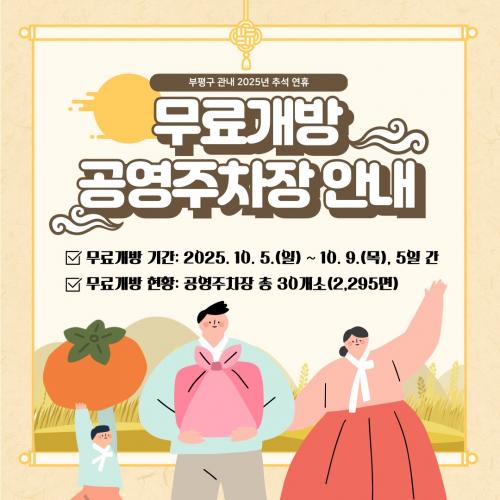 [½Åµ¿¾Æ¹æ¼Û ÀÎõ=À±¹Î½Ä±âÀÚ]ºÎÆò±¸½Ã¼³°ü¸®°ø´Ü(ÀÌ»çÀå À±³«¿µ, ÀÌÇÏ ¡®°ø´Ü¡¯)Àº Ãß¼® ¸íÀýÀ» ¸Â¾Æ 10¿ù 5ÀϺÎÅÍ 9ÀϱîÁö 5Àϰ£, ºÎÆò±¸ °ü³» °ø¿µÁÖÂ÷Àå 30°³¼Ò(ÃÑ 2,295¸é)¸¦ ¹«·á °³¹æÇÑ´Ù°í ¹àÇû´Ù. °ø´ÜÀº ¼³ ¸íÀý¿¡µµ °ø¿µÁÖÂ÷Àå ¹«·á °³¹æÀ» ÅëÇØ ±¸¹Î°ú¡¦