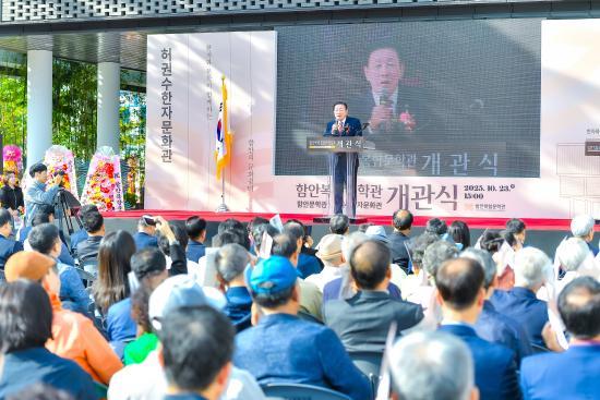 [½Åµ¿¾Æ¹æ¼Û °æ³²ÇÔ¾È=À̽ŵ¿±âÀÚ] ÇԾȱºÀº Áö³­ 23ÀÏ ¹®Çаú ÇÑÀÚ¹®È­°¡ ¾î¿ì·¯Áø º¹ÇÕ¹®È­°ø°£ ÇԾȺ¹ÇÕ¹®Çаü °³°ü½ÄÀ» ¼ºÈ²¸®¿¡ °³ÃÖÇß´Ù°í ¹àÇû´Ù. À̳¯ Çà»ç¿¡´Â Á¶±ÙÁ¦ ÇԾȱº¼ö¸¦ ºñ·ÔÇØ À̸¸È£ ÇԾȱºÀÇȸ ÀÇÀå, °æ³²µµÀÇȸ Á¶¿µÁ¦‧Á¶ÀÎÁ¦ ÀÇ¿ø, ÇԾȡ¦
