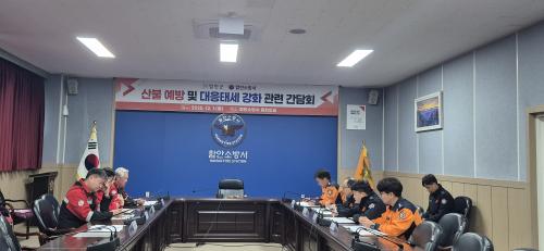 [½Åµ¿¾Æ¹æ¼Û °æ³²ÇÔ¾È=À̽ŵ¿±âÀÚ] ÇԾȱºÀº 1ÀÏ ÇԾȼҹ漭 ÁßȸÀǽǿ¡¼­ »êºÒ ¿¹¹æ°ú ´ëÀÀż¼ °­È­¸¦ À§ÇÑ °£´ãȸ¸¦ ¿­¾ú´Ù°í ¹àÇû´Ù. À̹ø °£´ãȸ¿¡´Â ÇԾȱº »ê¸²³ìÁö°úÀå°ú ÇԾȼҹ漭 ÇöÀå´ëÀÀ´ÜÀåÀ» ºñ·ÔÇØ 8¸íÀÌ Âü¼®ÇØ ´ëÇü »êºÒ ¹ß»ý ½Ã ºñ»ó °ü¸®Ã¼°è ¡¦
