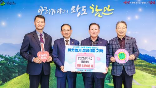 [½Åµ¿¾Æ¹æ¼Û °æ³²ÇÔ¾È=À̽ŵ¿±âÀÚ] ÇԾȱºÀº Áö³­ 9ÀÏ ÇԾȻó°øÈ¸ÀǼҰ¡ Áö¿ª ³» 20°³ ȸ¿ø»ç¿Í ÇÔ²² ¡®Èñ¸Á2026³ª´®Ä·ÆäÀΡ¯¿¡ µ¿ÂüÇÏ¸ç ¼º±Ý 1880¸¸ ¿øÀ» ±âŹÇß´Ù°í ¹àÇû´Ù. À̹ø ±âºÎ´Â Áö¿ª°æÁ¦¿Í Áö¿ª»çȸ°¡ ÇÔ²² ¼ºÀåÇÏÀÚ´Â ¶æ¿¡¼­ ȸ¿ø»çµéÀÌ ÀÚ¹ßÀûÀ¸·Î ¸¶¡¦