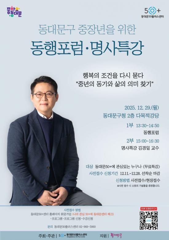 [½Åµ¿¾Æ¹æ¼Û µ¿´ë¹®±¸=À̽ŵ¿±âÀÚ] ¼­¿ï µ¿´ë¹®±¸°¡ ÁßÀå³âÀÇ ¡®Àλý 2¸·¡¯ ¼³°è¸¦ µ½±â À§ÇÑ °ø°³ Æ÷·³°ú Ư°­À» ¿¬´Ù. µ¿´ë¹®±¸´Â 29ÀÏ ¿ÀÈÄ 1½Ã 30ºÐ ±¸Ã» 2Ãþ ´Ù¸ñÀû°­´ç¿¡¼­ ¡®µ¿´ë¹®50Ç÷¯½º¼¾ÅÍ µ¿ÇàÆ÷·³¡¤¸í»çƯ°­¡¯À» °³ÃÖÇÑ´Ù°í ¹àÇû´Ù. 2026³â »ó¹Ý±â °³°üÀ»¡¦
