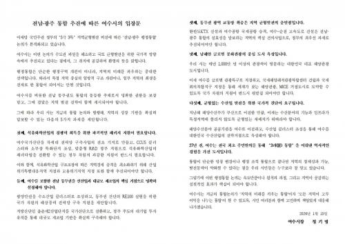 [½Åµ¿¾Æ¹æ¼Û ¿©¼ö=±è±â³² ±âÀÚ] ÃÖ±Ù Àü³²¡¤±¤ÁÖ ÇàÁ¤ÅëÇÕ ³íÀǰ¡ º»°ÝÈ­µÇ°í ÀÖ´Â °¡¿îµ¥, ¿©¼ö½Ã(½ÃÀå Á¤±â¸í)°¡ °ü·ÃÇØ ÅëÇÕÀÇ µ¿µîÇÑ ÁÖü·Î¼­ °øµ¿ ¼ºÀå ±â¹ÝÀ» ´ãº¸ÇÒ ¡®5´ë ÇÙ½É °úÁ¦¡¯¸¦ Á¤ºÎ¿¡ °ø½Ä Á¦¾ÈÇß´Ù. Á¤ ½ÃÀåÀº 15ÀÏ ÀÔÀå¹®À» ÅëÇØ ¡°¼öµµ±Ç °ú¹Ð¡¦