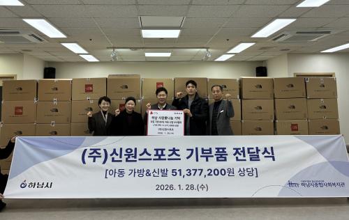 [½Åµ¿¾Æ¹æ¼Û Çϳ²½Ã=À̽ŵ¿±âÀÚ] Çϳ²½Ã´Â Áö³­ 28ÀÏ, ½ºÆ÷Ã÷ À¯Åëȸ»çÀÎ ¢ß½Å¿ø½ºÆ÷Ã÷°¡ ½ÅÇб⸦ ¸Â¾Æ Áö¿ª ³» Ãë¾à°èÃþ ¾Æµ¿À» À§ÇÑ Å°Áî °¡¹æ°ú ½Å¹ß µî 5,100¸¸¿ø »ó´çÀÇ Å°Áî ¿ëǰÀ» Çϳ²½ÃÁ¾ÇÕ»çȸº¹Áö°ü¿¡ ±âŹÇß´Ù°í ¹àÇû´Ù. À̳¯ Çϳ²½ÃÁ¾ÇÕ»çȸº¹Áö°ü¿¡¡¦