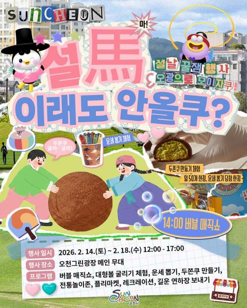 [½Åµ¿¾Æ¹æ¼Û ¼øÃµ=±è¿ëÈÆ ±âÀÚ] ¼øÃµ½Ã´Â ¼³ ¸íÀý ±â°£ ½Ã¹Î°ú ±Í¼º°´ÀÌ ÇÔ²² Áñ±æ ¼ö ÀÖ´Â Âü¿©Çü ¹®È­ ÇÁ·Î±×·¥ ¡¸¼³Ø©, ÀÌ·¡µµ ¾È¿ÃÄí?¡¹¸¦ ¿À´Â 14ÀϺÎÅÍ 18ÀϱîÁö ¿Àõ±×¸°±¤Àå¿¡¼­ ¿î¿µÇÑ´Ù. À̹ø Çà»ç´Â ¸íÀý ¿¬ÈÞ ±â°£ µµ½É ±¤ÀåÀ» ã´Â ½Ã¹ÎµéÀÌ ºÎ´ã ¾øÀÌ¡¦