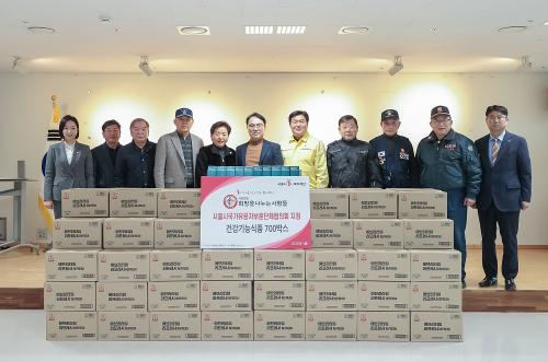 [½Åµ¿¾Æ¹æ¼Û ½ÃÈï½Ã=À̽ŵ¿±âÀÚ] ½ÃÈï½Ã´Â Áö³­ 3¿ù 11ÀÏ ¡®Èñ¸ÁÀ» ³ª´©´Â »ç¶÷µé¡¯ÀÌ ½ÃÈï½Ã1%º¹ÁöÀç´ÜÀ» ÅëÇØ ½ÃÈï½Ã º¸ÈÆ´Üü ÇùÀÇȸ¿¡ °Ç°­½Äǰ 700¿© °³ ¹× Áï¼®¹ä 7,000¿© °³¸¦ Àü´ÞÇß´Ù°í ¹àÇû´Ù. Àü´Þ½Ä¿¡ Âü¿©ÇÑ ¡®Èñ¸ÁÀ» ³ª´©´Â »ç¶÷µé¡¯Àº Àú¼Òµæ Ãë¾à°èÃþ¡¦